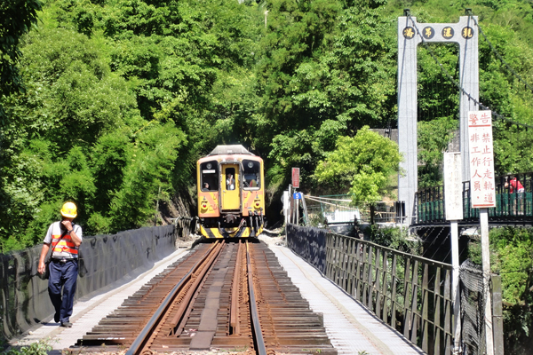散步在觀瀑吊橋上,欣賞宛如岩壁戴上眼鏡框的眼鏡洞瀑布,讓人感受純樸又寧靜的鐵道風情,你也可以沿平溪線鐵道隧道方向行走,回到十分老街,提醒您,請走平面水泥步道,而非鐵軌,並請小心注意火車經過。