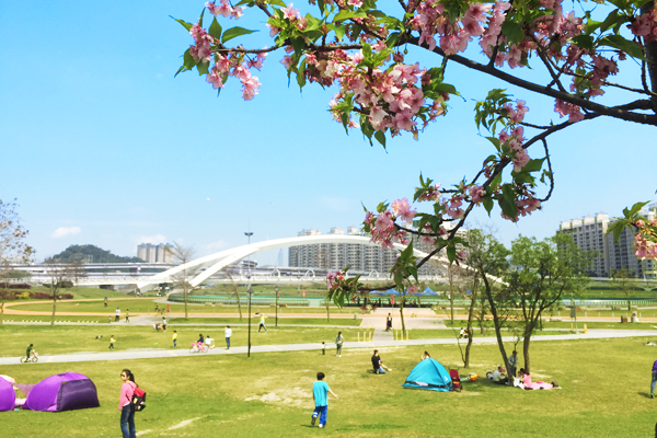 座落於新北市新店區的陽光運動公園,佔地面積約20公頃,緊鄰新店溪和碧潭左岸,園內擁有生態水池、緩坡草坪、兒童遊戲場、沙灘排球場、400公尺跑道和自行車道等設施,其中四季花道植栽了285株河津櫻,每年三月上旬正值櫻花綻放時期,適合一家大小前來遊憩賞花。