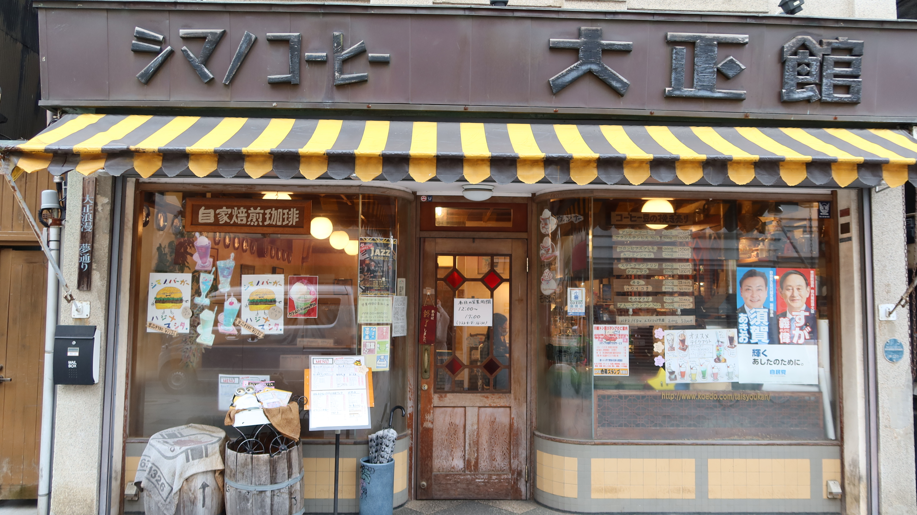 時光交錯的氛圍在大正浪漫夢通蔓延,和洋式建築帶著一點歐洲風,從路燈、建築到販賣機都很有味道,5月時就會在整條街道上方懸掛鯉魚旗來迎接夏天,繽紛的鯉魚旗隨風飄揚,在陽光下閃閃發亮。